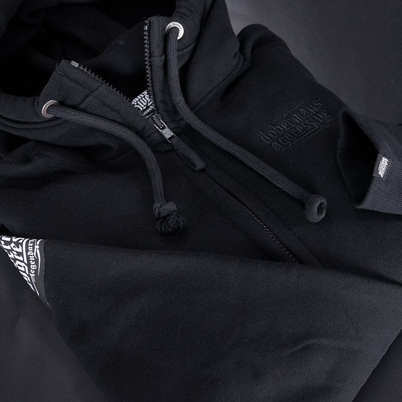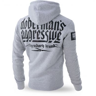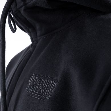 A kapucnis pulóver kiváló minőségű pamutból készült, melynek súlya 320g. A kapucni beállításához praktikus fűzők szolgálnak, végein fémből készült logókkal. A pulóver elején két praktikus zseb található. A pulóver alsó részén és az újjak végein elasztikus szegély található. A pulóver bal ujján egy céges logó található. A pulóver hátoldalát egy nagy méretű 3D-s nyomat díszíti. A pulóver elején nincs díszítés, kivéve a jobb vállon található Doberman’s Aggressive logót.