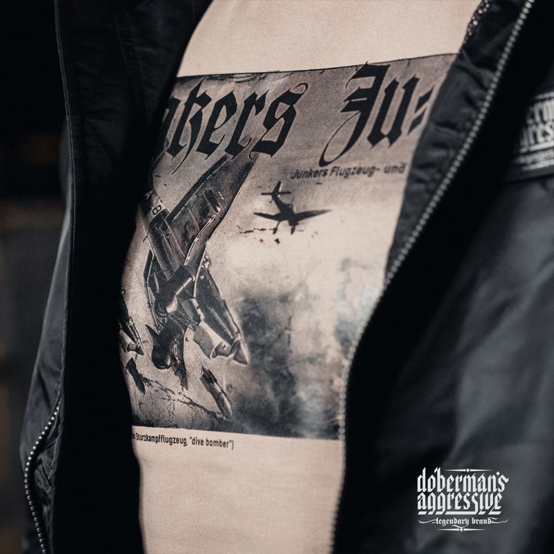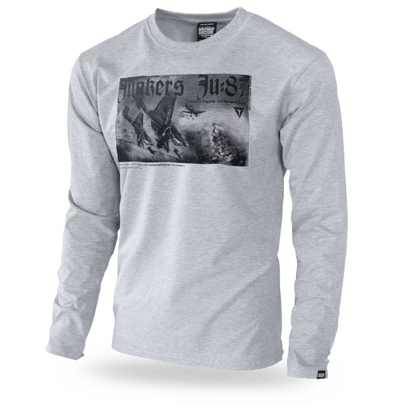 Klasszikus szabású hosszú ujjú férfi póló. A póló kiváló minőségű pamutból készült. A póló nyakánál elasztikus szegély található. A póló elején található mintán Ju87 típusú második világháborús bombázók vannak kiábrázolva, gótikus stílusú Junkers Ju87 felirattal kiegészítve. A hátoldalon a repülőgép vázlata és a fegyverzet leírása található.