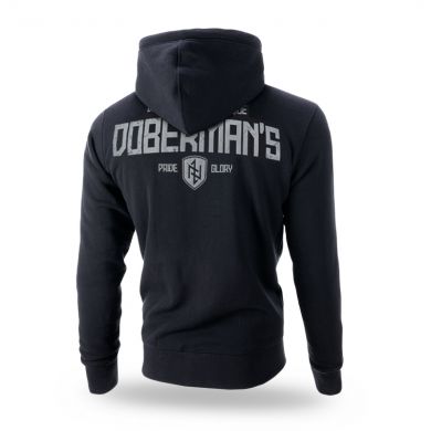 Cipzárral ellátott kiváló minőségű pamutból készült pulóver. A pulóver lején két zseb található. A pulóver bal ujján egy kis méretű céges logó található. A kapucni beállításához praktikus fűzők szolgálnak, végein fémből készült logókkal. A pulóver hátoldalán pajzsminta és egy nagyméretű DOBERMAN'S Dominus Vitae Necisque felirat található. A bal mellkason egy kis pajzsnyomat található rúnaemblémával.