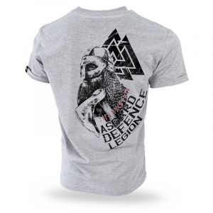 Klasszikus szabású férfi póló, amely kiváló minőségű pamutból készült. A póló bal ujján egy kis címke található a márka logójával. A hátoldalon egy vikinget és baltát ábrázoló minta található. A mellkas bal oldalát egy skandináv szimbólum miniatűrje díszíti Asgard Defence Legion felirattal.