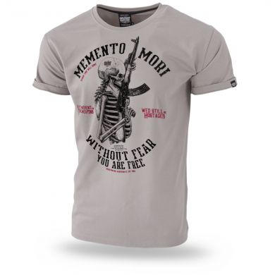 Klasszikus szabású férfi póló, amely kiváló minőségű pamutból készült A póló bal ujján egy kis címke található a márka logójával. A póló elején egy emberi csontvázat ábrázoló minta látható, egy MEMENTO MORI WITHOUT FEAR YOU ARE FREE felirattal kiegészítve.