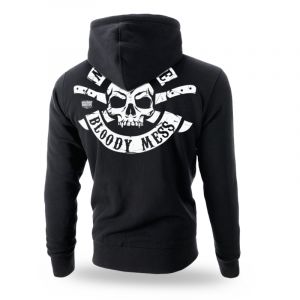 Minőségi pamutból készült kenguruzsebes pulóver. A pulóver bal ujján Doberman's Aggressive logó található. A kapucnis pulcsi hátulján egy kör alakú nyomat található, amely egy koponyát és egy MACHETE BLOODY MESS feliratot, valamint egy kisebb DOBERMAN'S logót ábrázol. A pulóver hátoldalán egy kisebb méretű identikus nyomat található.