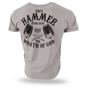 Klasszikus szabású rövid ujjú férfi póló, amely kiváló minőségű pamutból készült.A póló hátoldalát egy nyomat díszíti, amely keresztezett THOR kalapácsokat és HAMMER WRATH OF GOD feliratot és egy kisebb DOBERMAN'S logót ábrázol. A póló elején kisebb méretű identikus minta található.