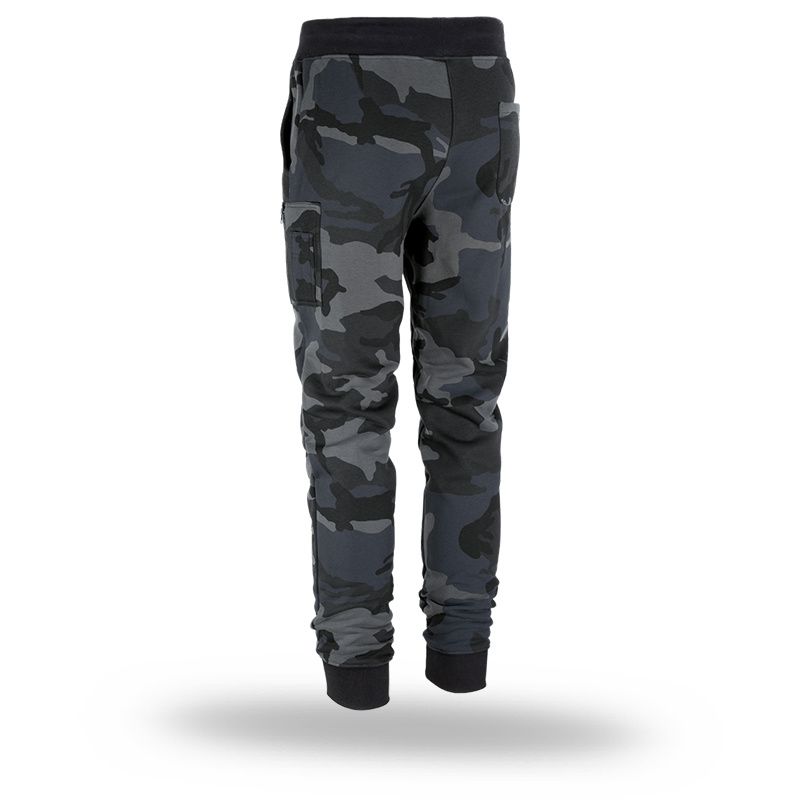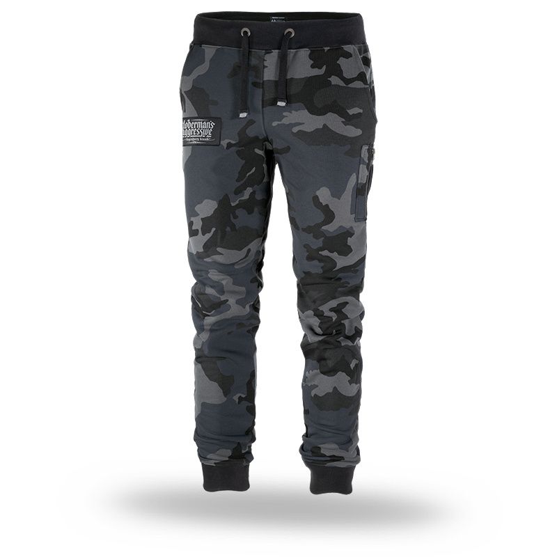 Vastag szövésű pamutból készült férfi melegítőnadrág, két oldalzsebbel és a nadrág hátulján egy zsebbel. Modell szövött folttal, Doberman's Aggressive.