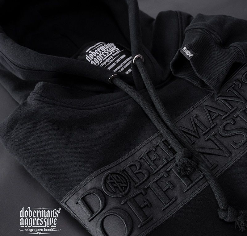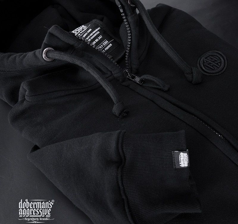 Klasszikus férfi cipzáras pamut pulóver. A pulóver alsó részén és az ujjak végein elasztikus szegély található. A pulóver kiváló minőségű pamutból készült, és az Offensive Premium modellsorozathoz tartozik. A kollekció ezen darabját klasszikus minták és prémium minőség jellemzi. A pulóver mellkasán egy 3D "Doberman's Offensive" hímzés található. A pulóver elején egy kisebb méretű 3D-s hímzés helyezkedik el.