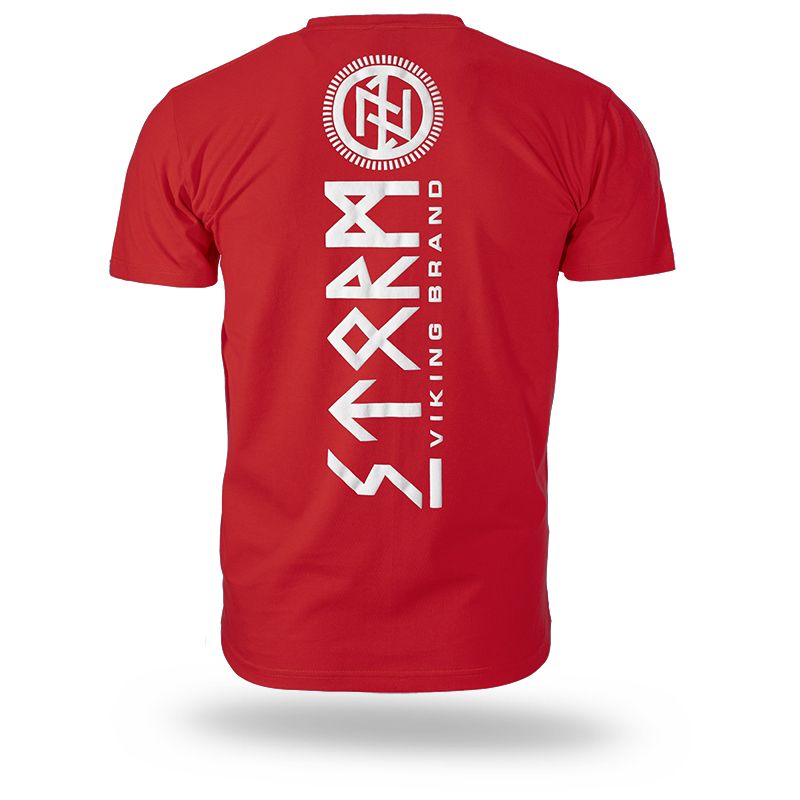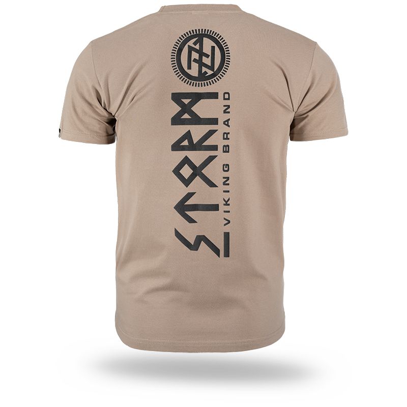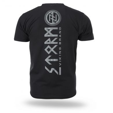 A póló 200 g súlyú pamutból készült. A bal ujjon egy kis méretű Doberman's Aggressive logó található. A póló hátoldalán egy STORM VIKING BRAND felirat található, skandináv szimbólummal kiegészítve. A póló elején egy kisebb méretű minta található, amely a fő motívumot követi.