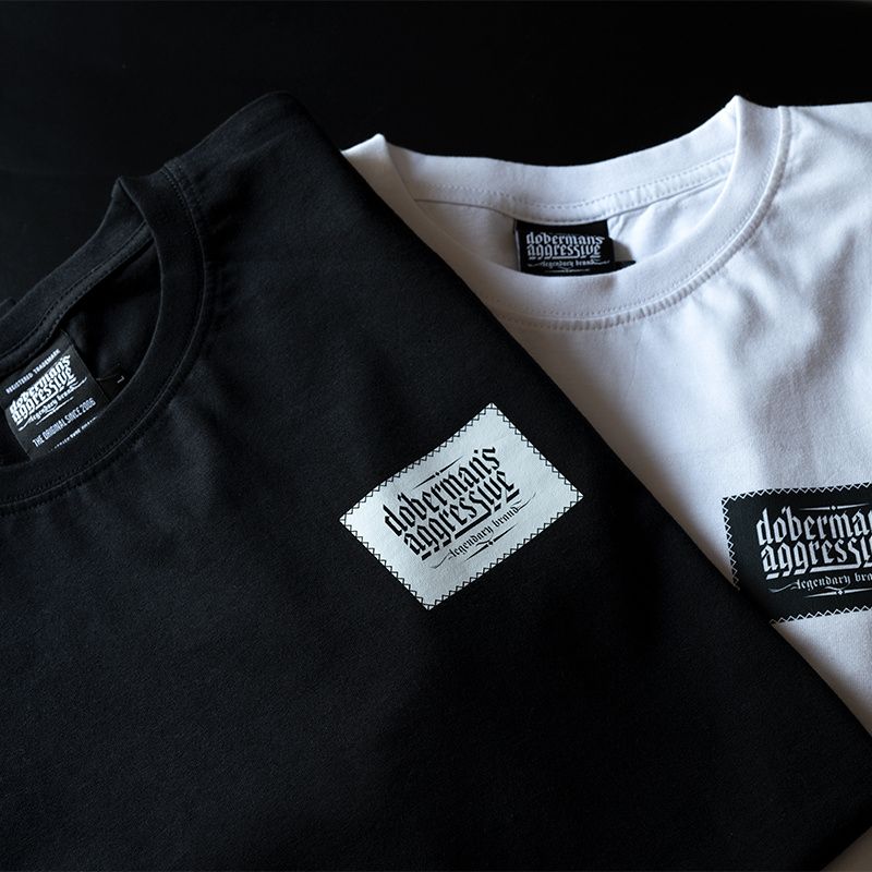 A póló 200 g súlyú pamutból készült. A bal ujjon egy kis méretű Doberman's Aggressive logó található. A póló elején egy vékony fonallal varrt márkalogó található. A póló dizájnja érdekes hatást kelt.