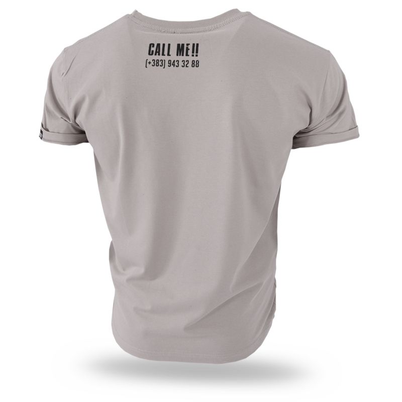 K Klasszikus szabású férfi póló, amely kiváló minőségű pamutból készült. A póló bal ujján egy kis méretű címke van varrva a márka logójával. A póló elején egy nagy méretű HIRED KILLER minta található. A póló hátoldalán egy kisebb méretű CALL ME [+ 383] 943 32 88 minta helyezkedik el.