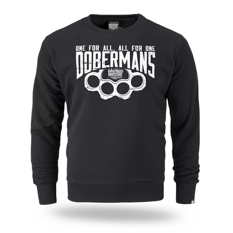 A bal ujjon egy kis címke található a márka logójával. A pulóver alsó része és az ujjak végei széles húzózsinórral vannak ellátva. A pulóver elején egy nagy DOBERMANS felirat található One For All, All For one felirattal. Az egészet egy boxer minta és a márka logója teszi teljessé.