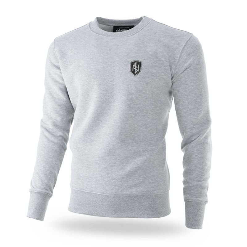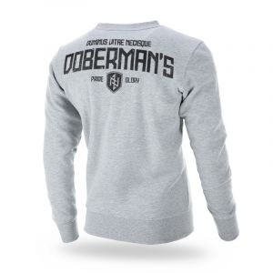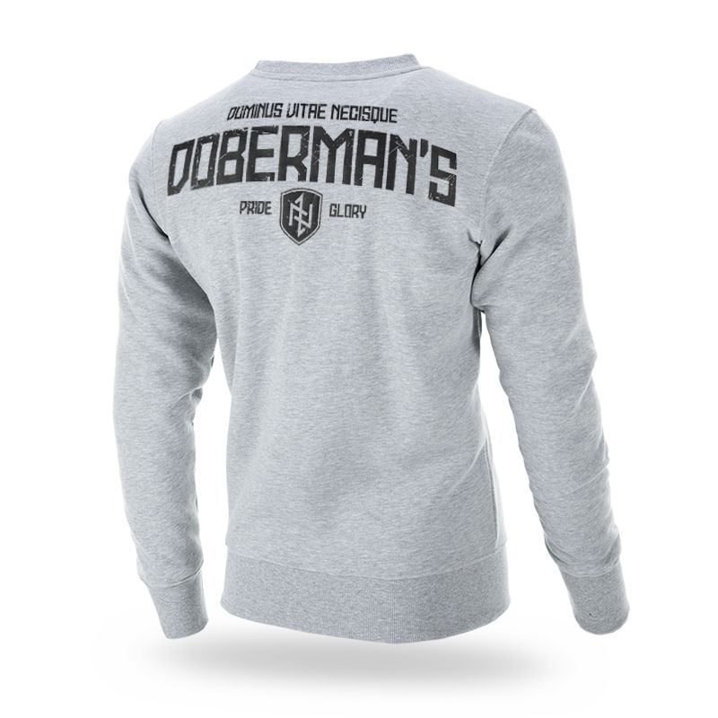 Klasszikus pulóver, alsó részén és az újjak végein elasztikus szegély található.A pulóver meleg és kiváló minőségű pamutból készült. A bal ujjon egy kis címke található a márka logójával. A hátoldalon egy nagyméretű DOBERMAN'S Dominus Vitae Necisque felirat található, a mellkas bal oldalán pedig egy kis pajzs alakú lenyomat rúna emblémával.