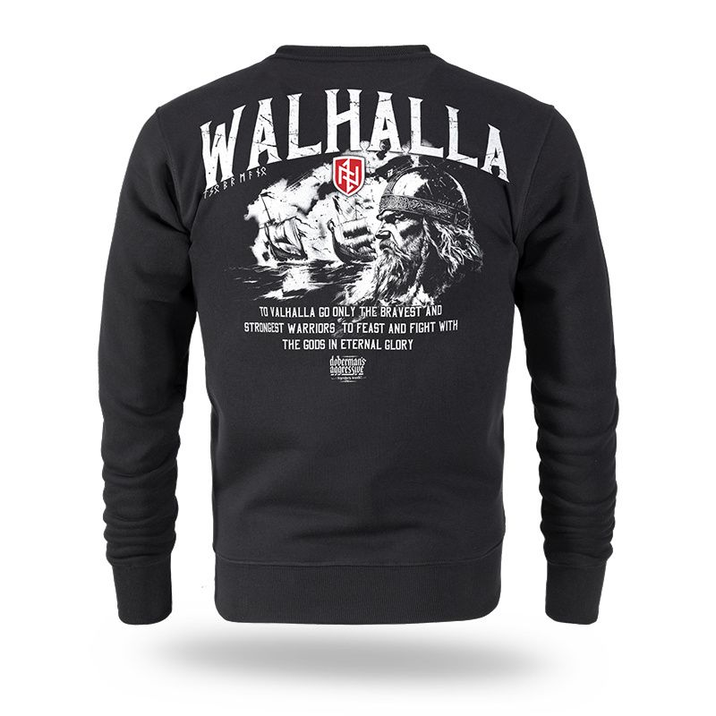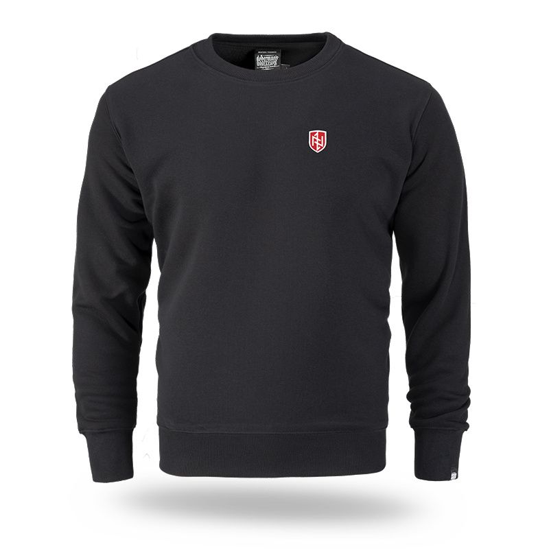 Klasszikus férfi pulóver, amely kiváló minőségű pamutból készült, súlya 320 g. A bal ujjon egy kis címke található a márka logójával.