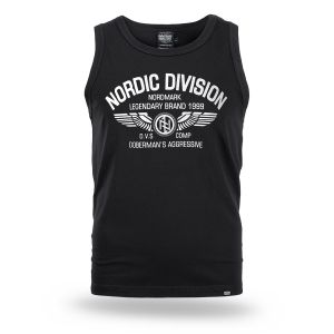 Kényelmes, klasszikus szabású modell, amely szabad mozgást és mindennapi kényelmet biztosít. Az elején egy nagyméretű nyomat található „Nordic Division – Nordmark Legendary Brand 1999” felirattal, amelyet szárnyakat ábrázoló grafika és a márka emblémája egészít ki. A design északi és katonai stílus által inspirált, amely kiemeli a márka jellegzetes és könnyen felismerhető karakterét. Az ujjatlan póló kerek nyakkivágással és szélesebb karkivágásokkal készült, így jól illeszkedik a testhez, és alkalmas sporttevékenységekhez valamint mindennapi viselethez is.