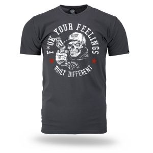 Kényelmes, klasszikus szabású modell kerek nyakkivágással, amelyet rugalmas passzé zár le. Az elején egy feltűnő nyomat látható: sapkát viselő, fegyvert tartó koponya, amelyet a „F*ck Your Feelings – Built Different” felirat és a Doberman’s Aggressive márkára jellemző grafikai elemek vesznek körül. A dinamikus design lázadó és kompromisszummentes karaktert hangsúlyoz, amelyet az utcai kultúra inspirált. A póló kényelmes viseletet biztosít, és tökéletes választás karakteres hétköznapi öltözékhez.