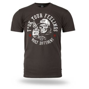 Kényelmes, klasszikus szabású modell kerek nyakkivágással, amelyet rugalmas passzé zár le. Az elején egy feltűnő nyomat látható: sapkát viselő, fegyvert tartó koponya, amelyet a „F*ck Your Feelings – Built Different” felirat és a Doberman’s Aggressive márkára jellemző grafikai elemek vesznek körül. A dinamikus design lázadó és kompromisszummentes karaktert hangsúlyoz, amelyet az utcai kultúra inspirált. A póló kényelmes viseletet biztosít, és tökéletes választás karakteres hétköznapi öltözékhez.