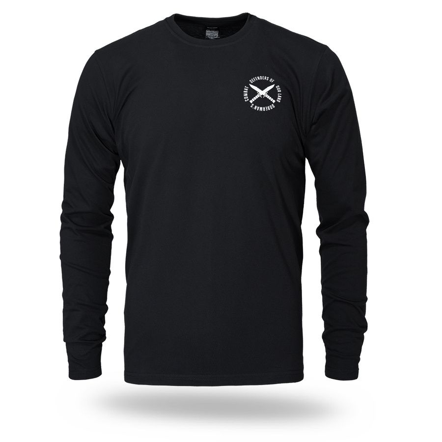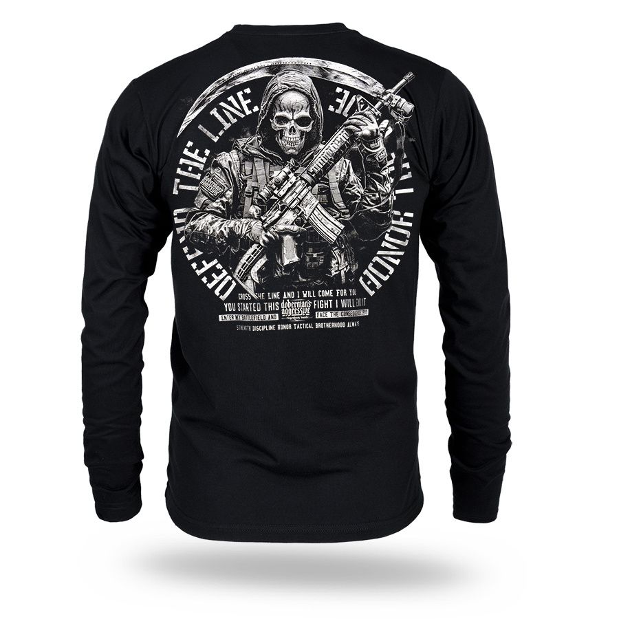 A modell kényelmes, sportos szabású, kerek nyakkivágással és hosszú ujjakkal készült, amely hűvösebb napokon is komfortos viseletet biztosít. A hátoldalon egy nagyméretű nyomat látható egy taktikai stílusú, fegyveres figurával és a „Protect – Live – Honor” felirattal, amely olyan értékeket szimbolizál, mint a bátorság, a hűség és a cselekvésre való készenlét. A mellrészen egy kisebb, minimalista logó kapott helyet. A pólót mindennapi viseletre tervezték, amely a kényelmet a katonai és taktikai stílus által inspirált karakteres megjelenéssel ötvözi. A gondosan elkészített nyomat és a masszív kivitelezés kiemeli a modell karakterét és tartósságát.