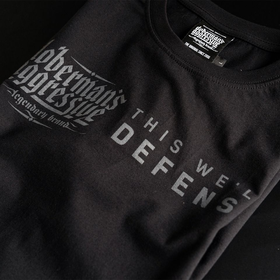 A póló kiváló minőségű pamutból készült. A bal ujjon egy kis címke található a márka logójával. A póló elején a márka logója és egy THIS WE'LL DEFENSE felirat található.